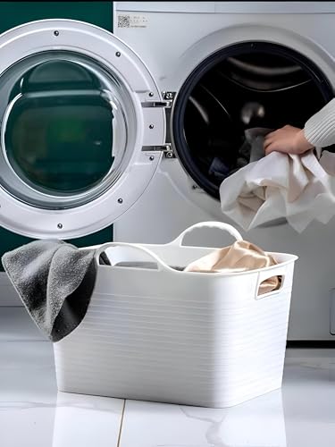 - مزودة بأربعة مقابض متينة مصممة هندسيًا، تتيح السلة الرفع والحمل وإعادة الوضع بسهولة في جميع أنحاء المنزل، مما يقلل من الضغط البدني مع ضمان قبضة آمنة حتى عند تحميلها بالكامل.
