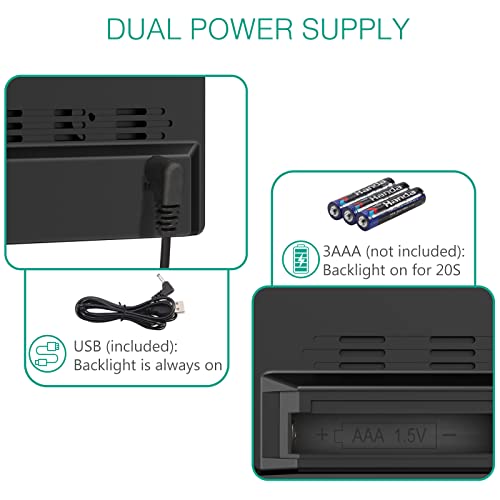 - 【ساعة منبه متعددة الوظائف】- ساعة المنبه الرقمية هذه مع شاشة LED كبيرة مقاس 6.7 انش تعرض الخطوط الكبيرة والوقت (12/24 ساعة) ودرجة الحرارة، مما يجعل من السهل قراءتها من مسافة بعيدة. مثالي لطاولة السرير أو مكتب المكتب.