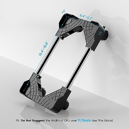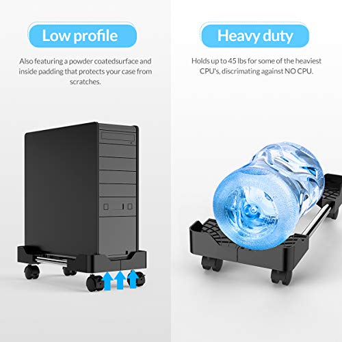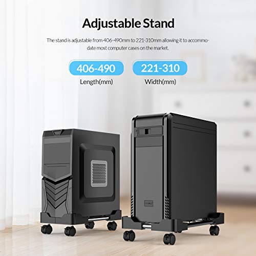 Orico - حامل لوحدة المعالجة المركزية المحمولة من اوريكو لبرج الكمبيوتر بتصميم قابل للتعديل وعجلات دوارة بقفل يناسب معظم أجهزة كمبيوتر الألعاب وصندوق السفلي والمكتب المنزلي موديل CPB4 أسود