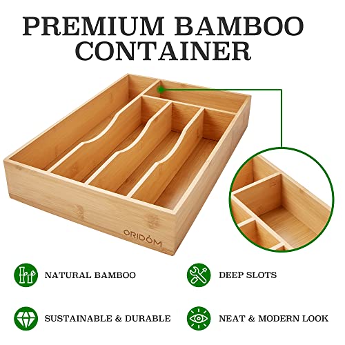 oridom - منظم أدراج أدوات المائدة الفضية من الخيزران مكون من 5 فتحات للمطبخ، صينية أدوات مائدة من خشب الخيزران في درج لأدوات المائدة والأواني في المطبخ من اوريدوم، (طبيعي)