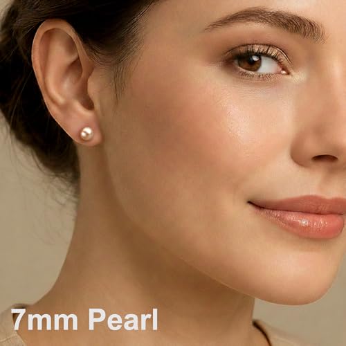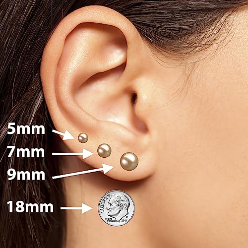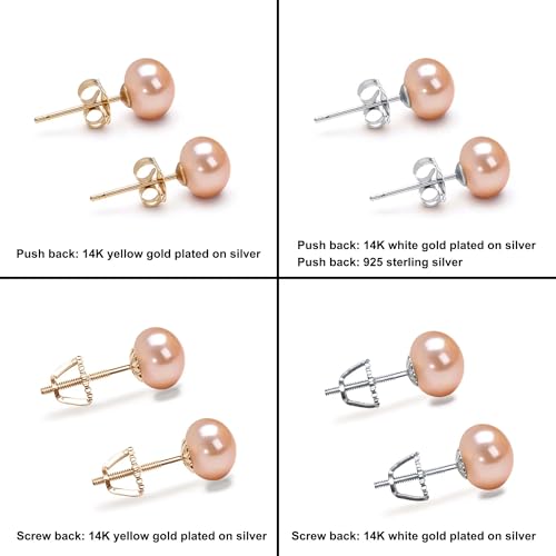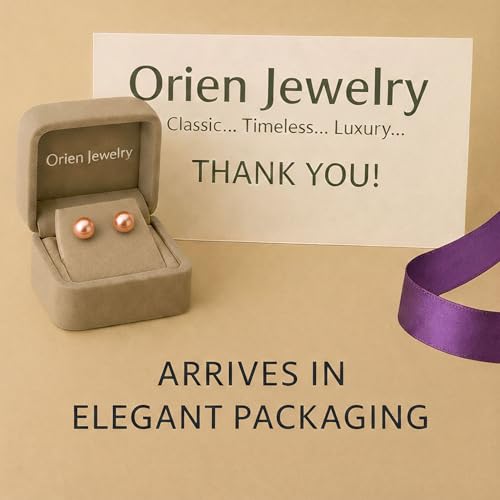 Orien Jewelry - حلقان صغيرة بريمة مرصعة باللؤلؤ المستزرع في المياه العذبة باللون البينك بدرجة AA مقاس 6-10 ملم للنساء مع قضبان من الفضة الاسترليني عيار 925 وعلبة هدايا مجوهرات بيرل لؤلؤ زهري اورين جوليري