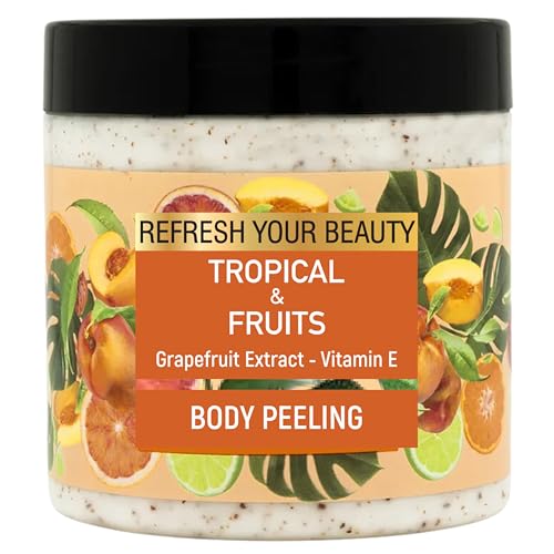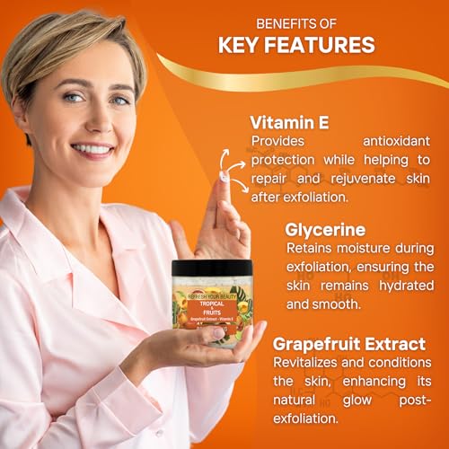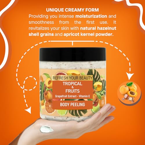 Oriense - مقشر للجسم بالفواكه الاستوائية بمستخلص الجريب فروت وحبوب قشر الجوز ونواة المشمش، وفيتامين اي، لمنحك انتعاش مفعم بالحيوية من اورينس - سعة 500 مل