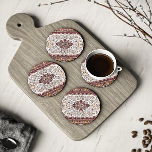 Generic - قواعد اكواب بنمط زهور شرقية - مجموعة من 4 قواعد اكواب مطاطية بتصميم تقليدي مقاومة للحرارة ومتينة - مجموعة من 4 قطع