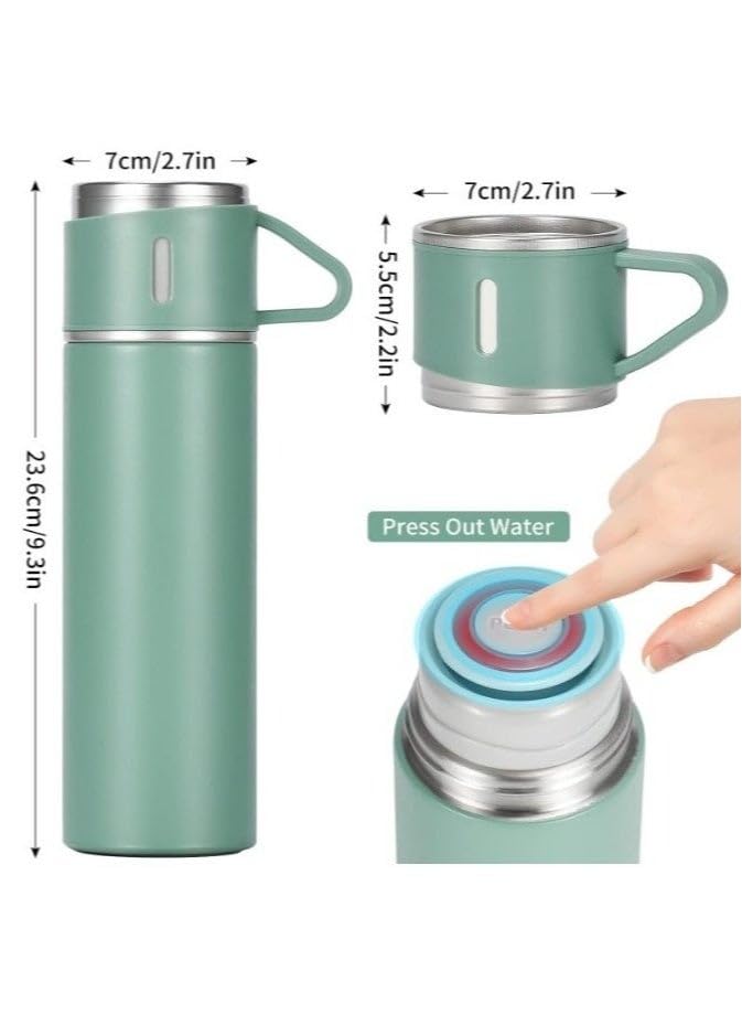 generic - كوب ثيرموس اصلي سعة 500 مل مع 3 اكواب، زجاجة حرارية، ثيرموس معزول بتفريغ الهواء للشاي والقهوة من الستانلس ستيل 304 مناسب للسفر مقاس M