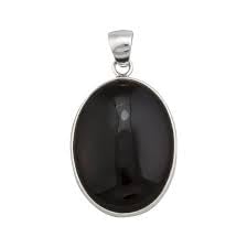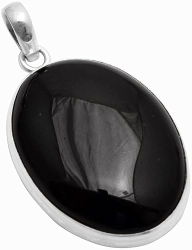 Generic - قلادة باطار فضي بيضاوي من العقيق الاسود الاصلي للرجال والنساء، افضل هدية، حجر الميلاد، نمط بوهو