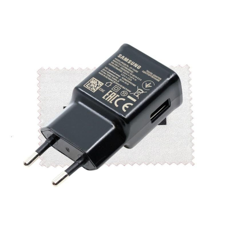 SHLOK - شاحن اصلي EP-TA200 لسامسونج جالاكسي A16 A15 A14 A13 A53 A52s A54 A55 A42 A34 A33 A71 A72 M53 M23 M13 S8+ S9Plus S10 S10e بدون كابلات شحن متضمنة) مع قطعة قماش تنظيف Shloكيه