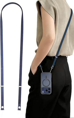 فكرة - حزام كروس مغناطيسي اصلي لموبايل ايفون 17/برو/ماكس/اير مع فتحات مزدوجة للحبل، حبل رقبة قابل للتعديل 108-208 سم للنساء والرجال (ازرق)