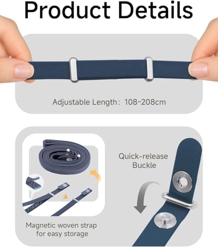 - طول قابل للتعديل: يتميز بمشبك مزدوج الجانب قابل للتعديل، والذي يمكن تخصيص مقاسك مع نطاق ممتد قابل للتعديل من الطول 42.5-81.9 بوصة (1080 ملم - 2080 ملم). ارتديه كحزام كتف أو حزام كروس عصري أو حتى كحبل رقبة طويل - أيًا كان ما يناسب أسلوبك وراحتك
