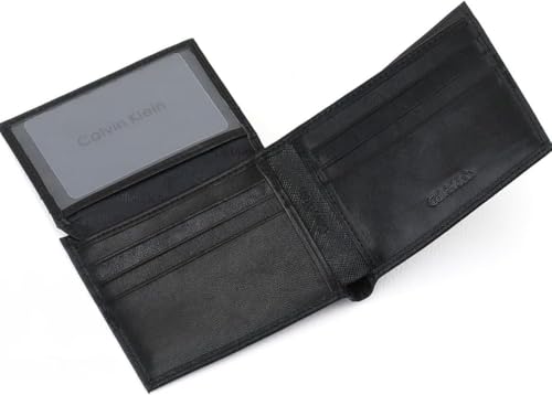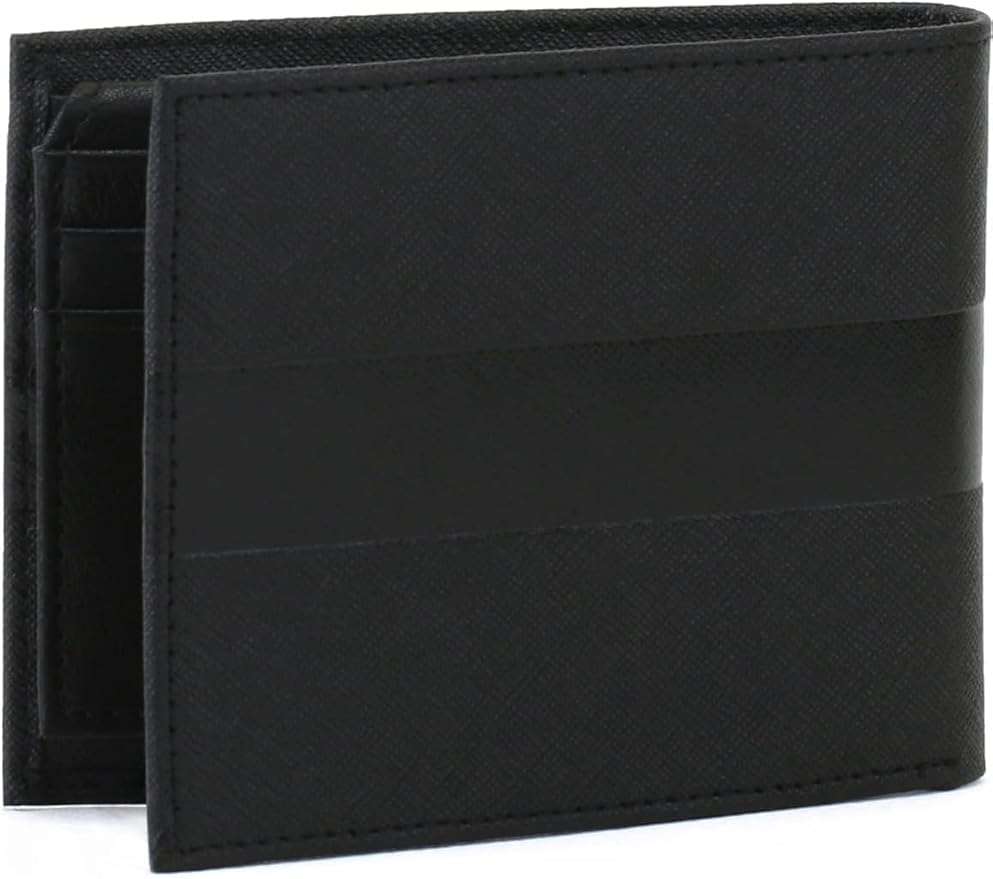 Generic - محفظة جلد طبيعي اسود اصلية للرجال - رفيعة ومتينة - فتحات متعددة للبطاقات ونافذة لبطاقة الهوية - تصميم كلاسيكي انيق - هدية مثالية للرجال