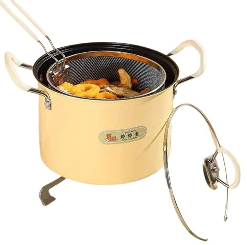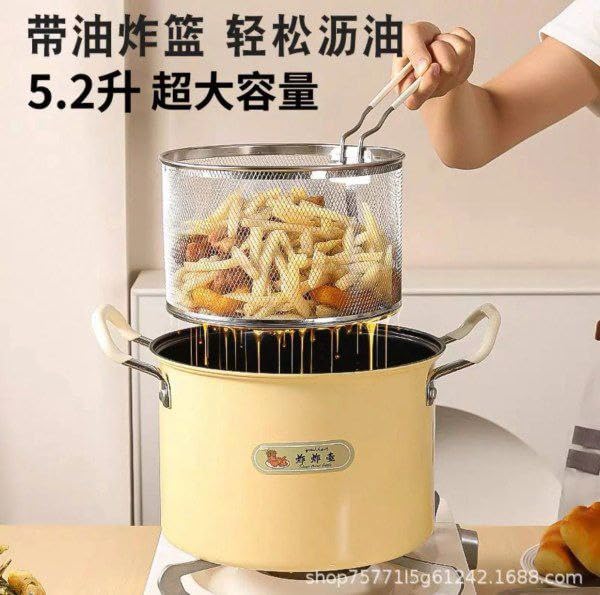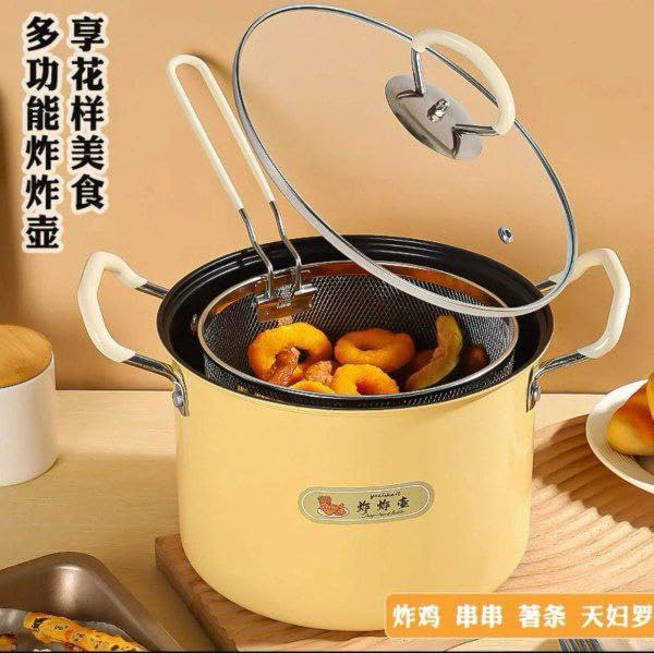 Generic - حلة تحمير أصلية مع باسكت شبك وغطاء زجاج حراري - مقلاة عميقة مانعة للالتصاق لتحمير البطاطس والدجاج، مزودة بمقابض ستانلس وتصميم ذكي لتصفية الزيت