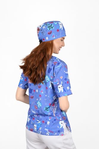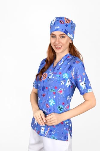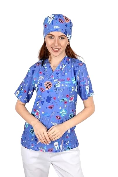 Resan Medical wear - سكراب طبي أصلي مطبوع للجنسين - زي طبي جراحي بأكمام قصيرة، للأطباء والطاقم الطبي، أزرق، سمول S
