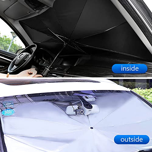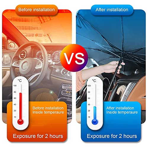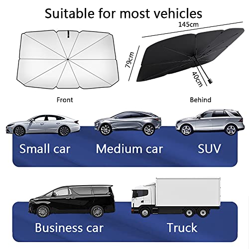 ORiTi - شماسة شكل مظلة قابلة للطي سهلة الاستخدام/التخزين لحماية زجاج مقدمة السيارة من الاشعة فوق البنفسجية مناسبة لمعظم السيارات من اوريتي، مقاس 145×79 سم