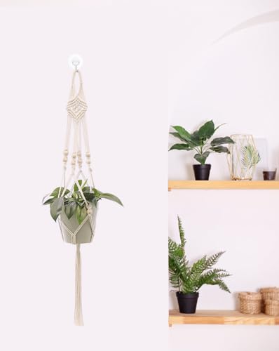 - مقاس شماعة النباتات المكرمية: يبلغ طول شماعة النباتات حوالي 105 سم. شماعات النباتات مناسبة للأواني التي يتراوح قطرها من 15 سم إلى 20 سم. (النباتات أو الأواني غير متضمنة).