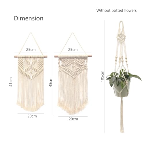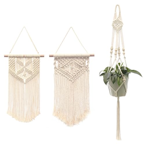 ORiTi - مكرمية صغيرة للتعليق على الحائط من 3 قطع مصنوعة يدويا بنمط بوهيمي منسوج لديكور الحائط، شماعات نباتات مكرمية لغرفة النوم وغرفة المعيشة والشقة والمعرض والمنزل