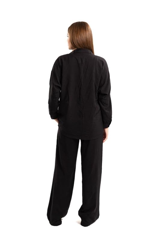 ORLA - استمتع بمظهر مريح وعصري مع هذه المجموعة الكاجوال الأنيقة التي تتميز ببلوزة بأكمام طويلة وبنطلون بأرجل واسعة من اورلا