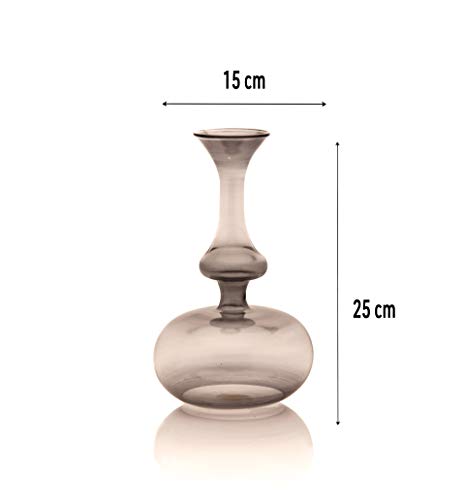Ornamenta - فازات لديكور المنزل - فازة زجاجية من الزجاج المنفوخ، بول رمادي غامق مناسبة لطاولة الطعام وتزين بالزهور، مناسبة لديكور الرفوف، فازة مستديرة لديكورات الزهور الصناعية