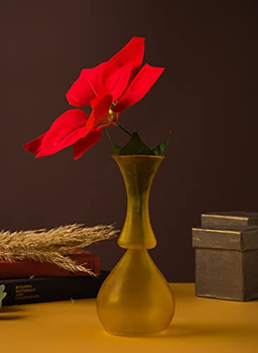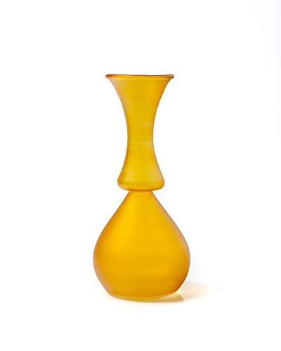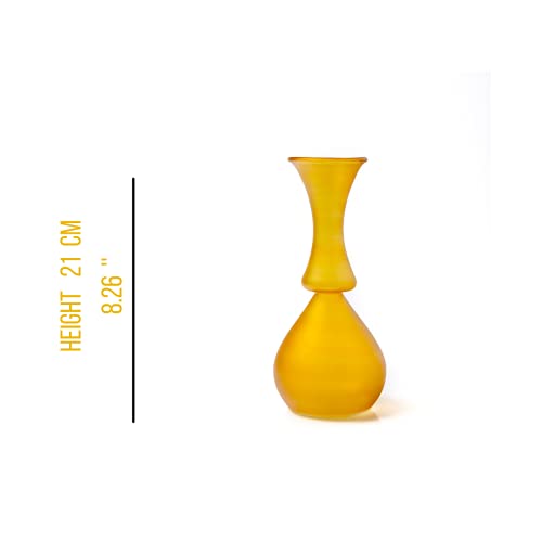 Ornamenta - فازة زجاجية بلورية صفراء مزخرفة للزهور الصناعية بنمط ارت ديكور، لحفلات الزفاف وعيد الأم، ديكور مكتب، قطعة مركزية لتزيين الطاولة، ارتفاع 21 سم من اورنامينتا