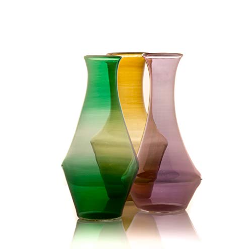 Ornamenta - فازة زجاجية صغيرة للزهور لديكور المنزل الريفي الحديث، ارتفاع 17.8 سم من أورنامينتا، أخضر وبرتقالي وأرجواني طقم من 3 قطع