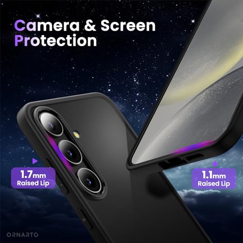 ORNARTO - اورنارتو جراب متوافق مع سامسونج جالاكسي S24 بلس حماية من السقوط الدرجة العسكرية يدعم الشحن اللاسلكي كامل نحيف لموبايل S24+ 6.7 بوصة - اسود بلاستيك