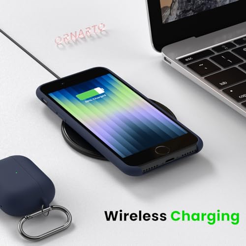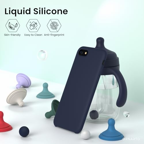 ORNARTO - جراب رفيع وناعم من المطاط الجل والسيليكون السائل مع جزء سفلي مفتوح من اورانرتو لموبايل آيفون SE إصدار 2020 و2022 وآيفون 7 و8 مقاس 4.7 بوصة - بلون أزرق ميدنايت