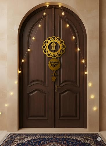 Generic - ديكور رمضان مزخرف - زينة خشبية فاخرة بلمسة نهائية ذهبية واقفة، تخلق نقطة محورية مذهلة لغرف رمضان. سهلة التعليق على الحائط أو الباب، الحرفية تضمن روعة تدوم لشهر رمضان.