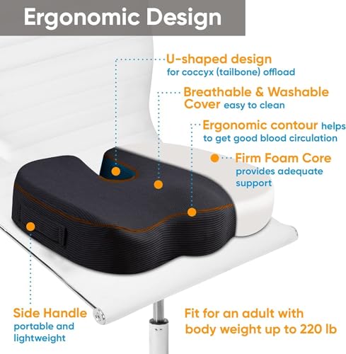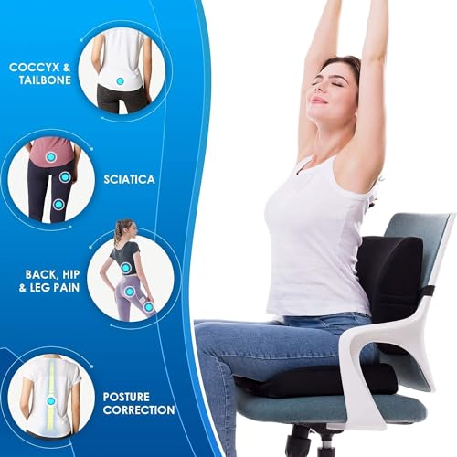 Orthowala - اورثو والا وسادة دعم للمقعد والفقرات القطنية لكرسي المكتب، وسادة مقعد السيارة من الميموري فوم مع غطاء قابل للغسل، وسادة كرسي مكتب لعظم الذيل وآلام أسفل الظهر وتخفيف عرق النسا (اسود)