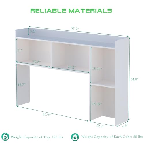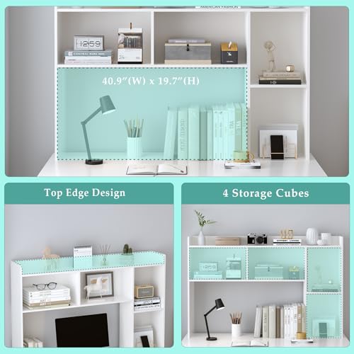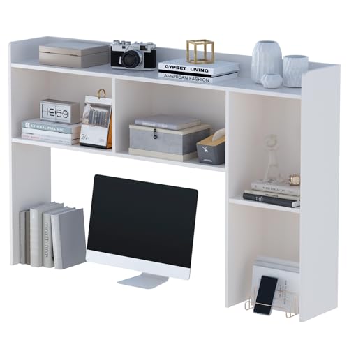 OSCHF - رف كتب خشبي لسطح المكتب من او اس سي اتش اف - رف تخزين مكتب قائم بذاته مع حافة علوية لمكتب الكمبيوتر، خزانة كتب لسطح المكتب للسكن والمنزل أو المكتب، منظم سطح الطاولة، أبيض، 53.5 بوصة