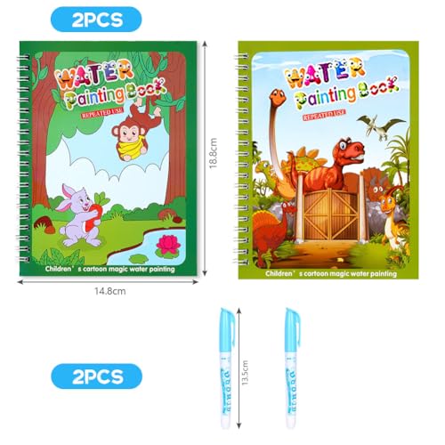 - ️️ [كتاب رسم مائي - مجموعة واحدة] - ستحصل على كتابين بالألوان المائية بنمطين مختلفين، نمط الديناصورات ونمط الحيوانات، مع قلمين قابلين لإعادة الاستخدام؛ كمية وأنماط كافية لتلبية تفضيلاتك بسهولة، ويمكنك أيضًا مشاركة كتب الألوان المائية هذه مع أشخاص آخرين. شارك كتب الألوان المائية هذه.