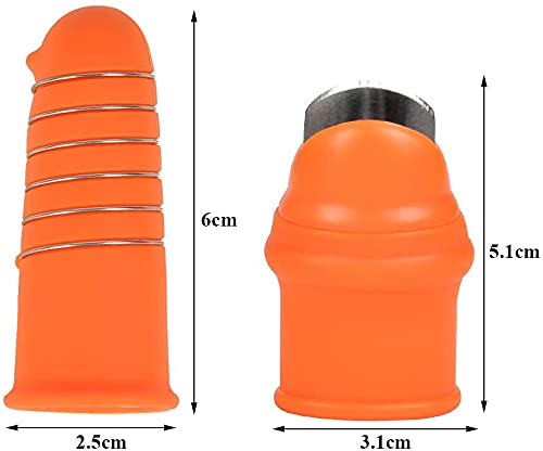 • تصميم سهل الاستخدام: أدوات تقطيع الإبهام سهلة الارتداء للغاية، تحتاج فقط إلى وضع سكين الإبهام على إبهامك، ووضع مهد الأصابع المصنوع من السيليكون المقاوم للقطع على إصبع السبابة، ثم يمكنك البدء في العمل.
