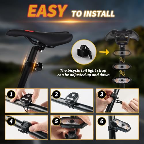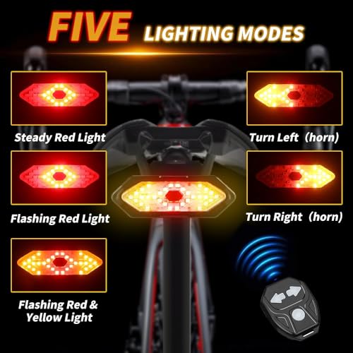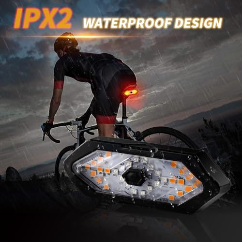 - 【مؤشر دراجة ذكي مع جهاز تحكم عن بعد】عزز سلامة ركوب الدراجات الخاصة بك مع مصباح الدراجة الخلفي الذي يتميز بمؤشرات يسار ويمنى يمكن التحكم فيها عبر جهاز التحكم عن بعد المرفق. مع ثلاثة أوضاع - الضوء الأحمر والوميض الأحمر وجميع الوميض - يضمن رؤية عالية، وجذب انتباه زملائك راكبي الدراجات وتعزيز سلامة القيادة بشكل عام.