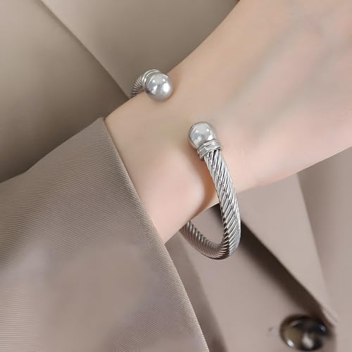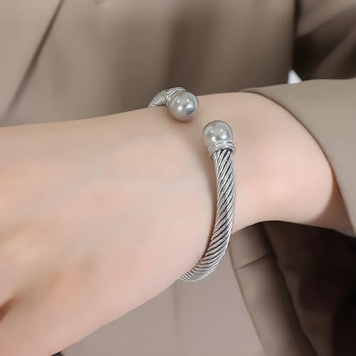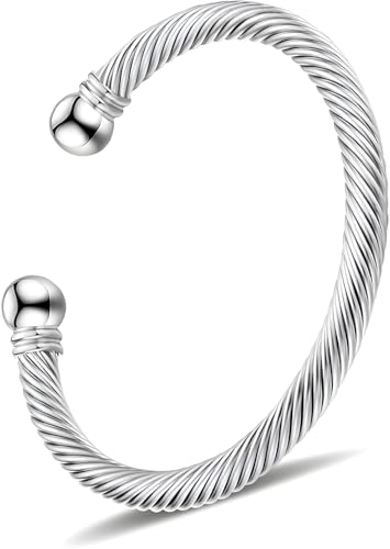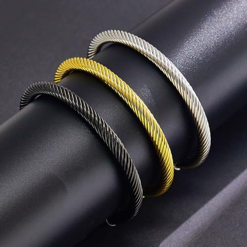 OSIRIDEH2 - أساور سلكية ملتوية من الفولاذ المقاوم للصدأ، أساور عريضة مفتوحة قابلة للتعديل، مجوهرات عتيقة للنساء من OSIRIDEH2