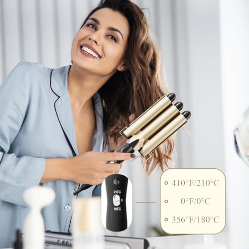 - 【درجة حرارة قابلة للتعديل】مكواة التجعيد بثلاث أسطوانات هذه تحتوي على خيارين لدرجة الحرارة وهما 180 درجة مئوية و210 درجة مئوية، بحيث يمكنك اختيار درجة الحرارة المناسبة لشعرك. تتميز بمقبض مانع للانزلاق وفوهة مصنوعة لتمنع حرق يديك والحامل الأمامي المعزول يجعل المكواة لا تلمس المكتب مباشرة عند وضعها، مما يحمي الأسطح من الحرارة.