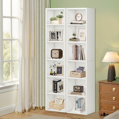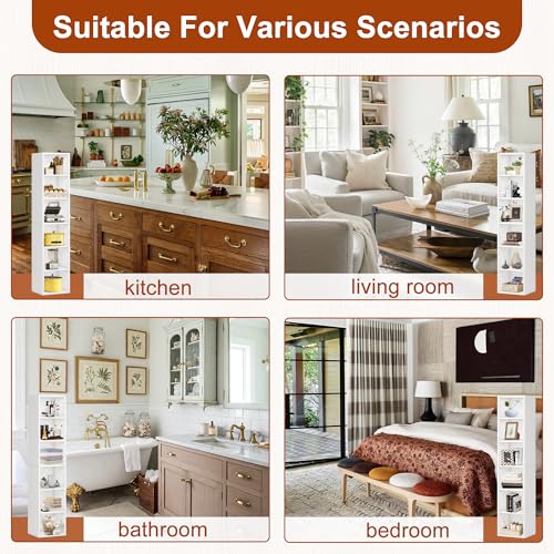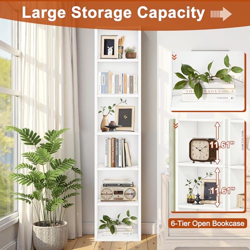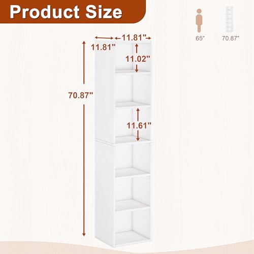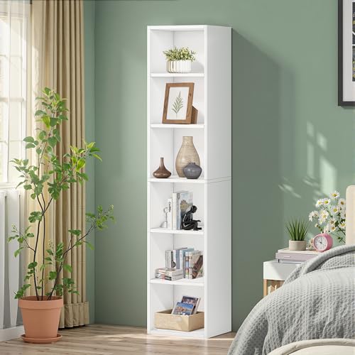 Osparple - خزانة كتب طويلة ضيقة، خزانة كتب عمودية من 6 أرفف للمساحات الصغيرة، رف تخزين قائم بذاته بارتفاع 1.8 م لغرفة النوم وغرفة المعيشة والحمام، منظم عرض عصري مع مجموعة مضادة للانقلاب من اوسباربل، أبيض