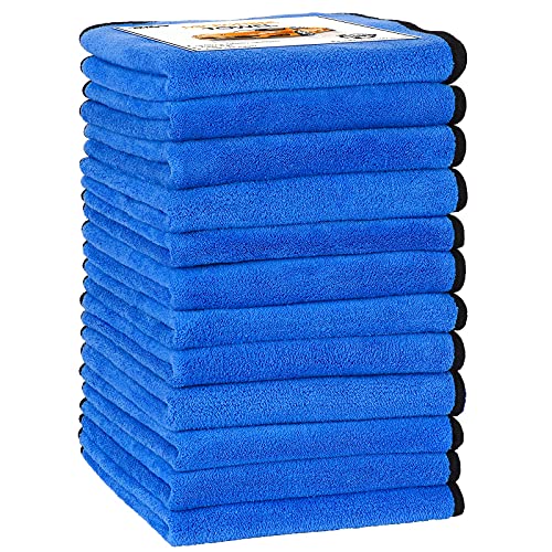OSTAN - فوط تنظيف مايكروفايبر لتجفيف السيارات من اوستان، ضد الخدش 500 جم/م²، قماش تنظيف بامتصاص قوي للماء، لسيارات الدفع الرباعي، والشاحنات، والقوارب، فوط لغسيل السيارات، 12 قطعة (41 × 41 سم)