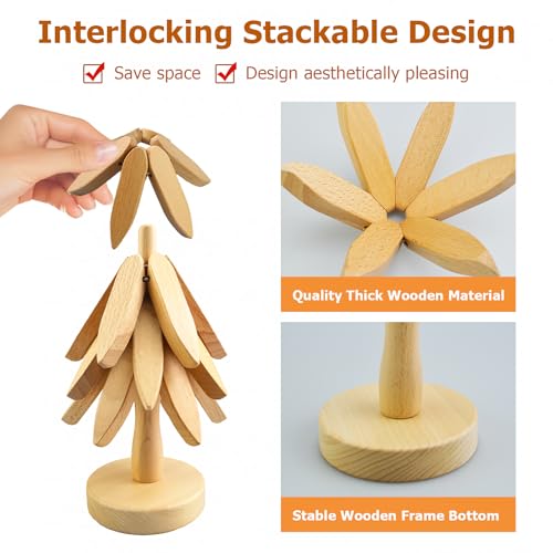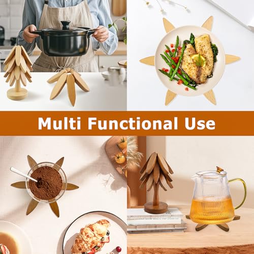 - تصميم مبتكر: تحتوي كل قاعدة أكواب خشبية للأطباق الساخنة على ست قطع خشبية صغيرة، ما عليك سوى إخراج إحداها من الحامل ووضعها مباشرة على الطاولة دون أي تجهيز مسبق، ثم رفع الإناء ووضعه ببطء فوقها، لتتفتح تلقائيًا بفعل الجاذبية وتؤدي وظيفتها، مما يجعل كل استخدام تجربة ممتعة ومبتكرة.