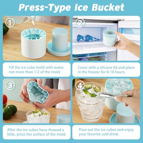 - 【قالب سيليكون عالي الجودة】دلو مكعبات الثلج الخاص بنا مصنوع من مادة السيليكون الآمنة غذائيًا، آمن وغير سام، ملمس ناعم، يمكن تخزين صواني مكعبات الثلج في درجة حرارة منخفضة لفترة طويلة دون تشقق، قابل لإعادة الاستخدام، كن مطمئنًا من الاتصال المباشر بالطعام، لذلك يمكنك الاستمتاع بسرعة وثقة بمشروبك البارد المفضل في أي وقت.