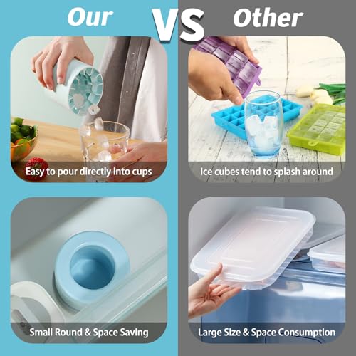 - 【توفر المساحة】أكواب مكعبات الثلج الأسطوانية صغيرة ومستديرة لسهولة وضعها. تشغل مساحة أقل مقارنة بصواني مكعبات الثلج المسطحة، وتتناسب القاعدة الثابتة تمامًا مع غطاء قالب آخر حتى تتمكن من تكديس العديد من قوالب الثلج المصنوعة من السيليكون. مثالية للثلاجات الصغيرة أو ثلاجات السيارات ذات مساحة تخزين صغيرة.