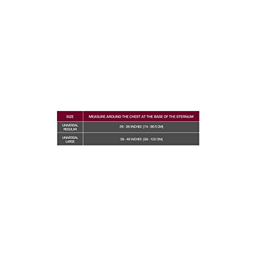 - قم بالقياس حول الصدر عند قاعدة القص. المقاسات المتوفرة: عادي متعدد (74-96.5 سم)، مقاس كبير متعدد (99-122 سم).