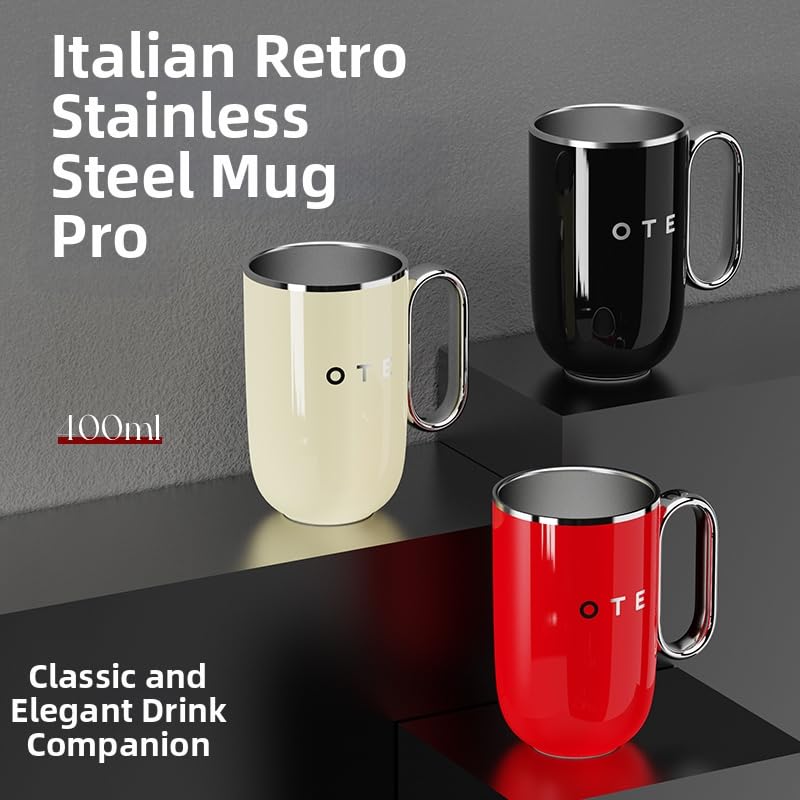 OTE - كوب قهوة للسفر سعة 400 مل من او تي اي، مصنوع من الستانلس ستيل معزول بتفريغ الهواء للمشروبات الساخنة والثلج للمنزل والمكتب والعمل في الهواء الطلق (اسود)