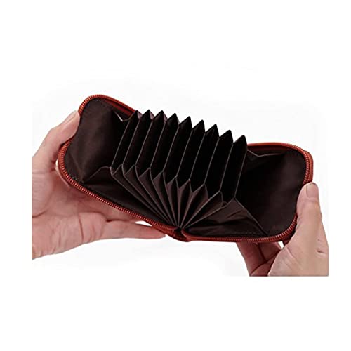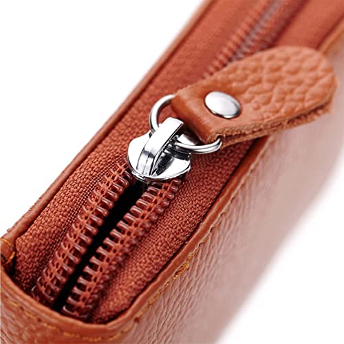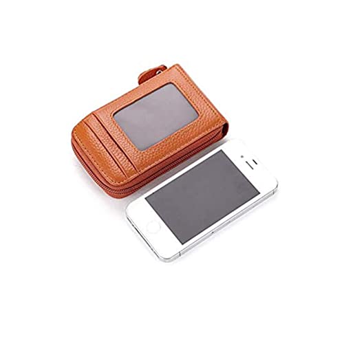 COOLBABY - حامل بطاقات هوية وائتمان مصنوع من جلد طبيعي بسوستة بتصميم محفظة للنساء، بني