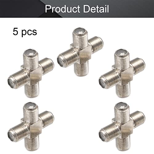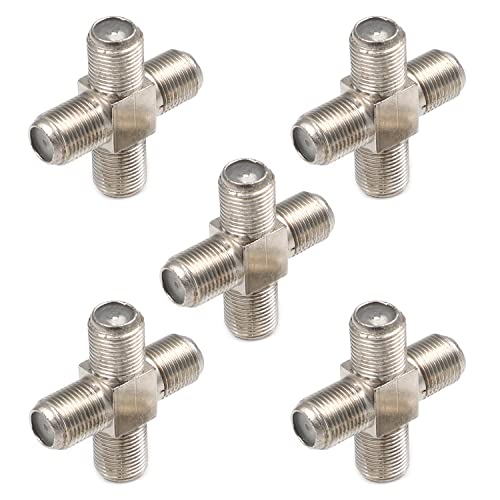 Othmro - موزع محوري من النوع F عدد 5 قطع موصل محول 4 اتجاهات مقسم كابل أنثى RF لكابل الفيديو والتلفزيون فضي اوثمرو