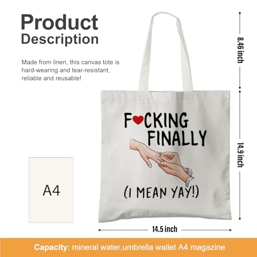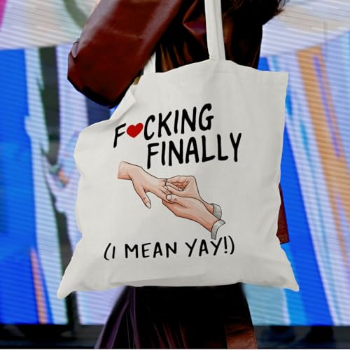 OTOUO - شنطة توت قماشية بتصميم عبارة In My Engaged Era من اوتو- شنطة كتف قماشية بلون زهري للعروس، شنطة توت للعروس، هدايا الخطوبة لها