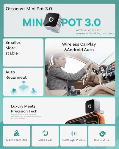 OTTOCAST - محول كاربلاي لاسلكي ميني 3.0 من اوتوكاست ومحول لاسلكي تلقائي بنظام اندرويد فضي