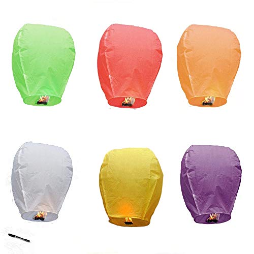 Ou.lexuan - فوانيس ورقية صينية تطير في السماء قابلة للتحلل بالكامل، مناسبة للأعراس والحفلات والمهرجانات، فوانيس كونجمينج للتمني لاحتفالات رأس السنة أو الذكريات أو الكريسماس من او.ليكسوان، 6 قطع