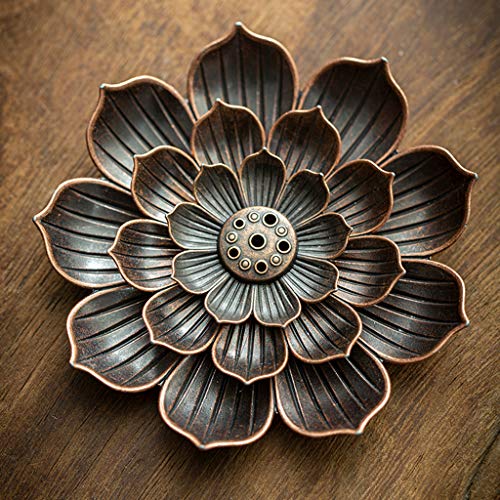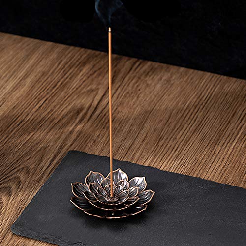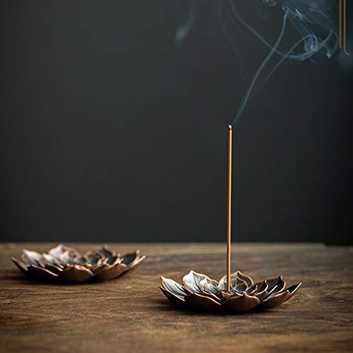 - ❤حرفية رائعة - حامل بخور نحاسي عتيق بوزن ثقيل وصلابة ومتانة. شكل اللوتس بسيط وأنيق ورائع وأنيق مع مذاق زخرفي.