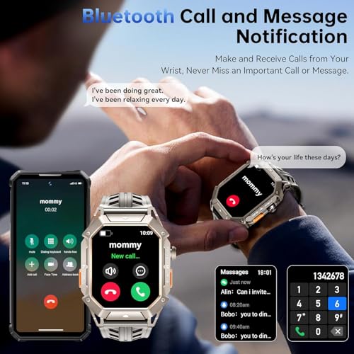 - 【جودة قياسية عسكرية】- اجتازت 12 شهادة متميزة: مقاومة للصدمات ودرجة الحرارة القصوى، مقاومة للماء IP68 (مقاومة للماء حتى عمق 50 مترًا)، مقاومة للغبار والخدوش والصدمات وغيرها من الاختبارات، والتي يمكن أن تتحمل البيئات القاسية، تم تصميم هذه الساعة الذكية للرجال لعشاق الهواء الطلق.