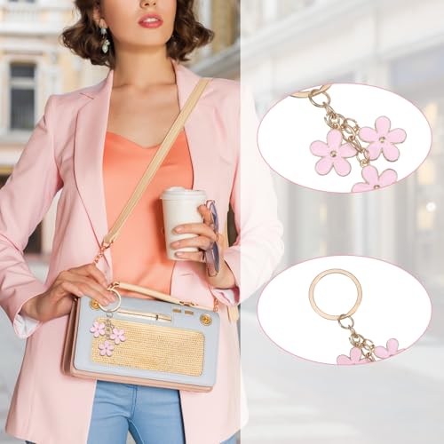 Ouligay - سلسلة مفاتيح لطيفة على شكل زهرة للنساء والفتيات من اوليجاي، سلسلة مفاتيح على شكل زهور لشنط اليد والمحفظة، سلسلة مفاتيح لطيفة باللون الزهري، اكسسوارات لأفضل صديق في عيد الميلاد والام والام