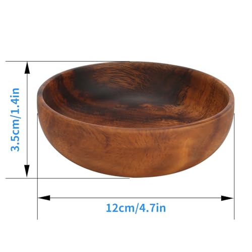 Oumefar - وعاء دائري من الخشب الطبيعي لتقديم الطعام الداكن والسلطة والحساء والنودلز والارز والفواكه والخضروات للاستخدام في المنزل والمطعم والمقهى 12 × 3.5 سم اومفار بني