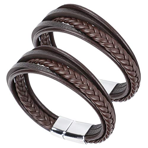 Generic - سوار كاجوال كلاسيكي وانيق من الجلد الصناعي منسوج بمشبك مغناطيسي للرجال من قطعتين من اوميفار