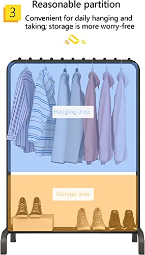 - تخزين للمساحات الصغيرة-- يمنح الرف السفلي لرف الملابس هذا مزيدًا من القوة والثبات والمتانة، كما يوفر مساحة بعيدة عن الأرض للأحذية والسلال والشنط والمظلات.